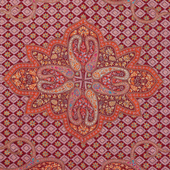 Adorned with delicate Resham threads, the shawl features intricate embroidery that enhances its beauty. Each thread is meticulously placed to create timeless patterns that captivate the eye.